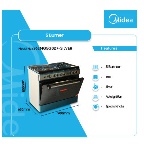 MIDEA 90x60 GAS COOKER WITH GRILL - SILVER